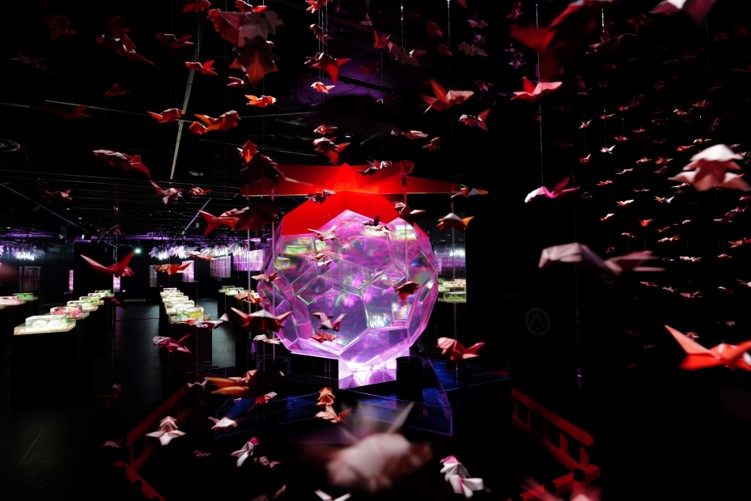 アートアクアリウムは、江戸時代から続く金魚鑑賞文化を芸術作品として表現したもので、光彩や音楽、香りを用いて幻想的な空間を演出しています。美術館内は日本の伝統美が散りばめられ、和の世界観が広がっており、写真撮影もOKです。