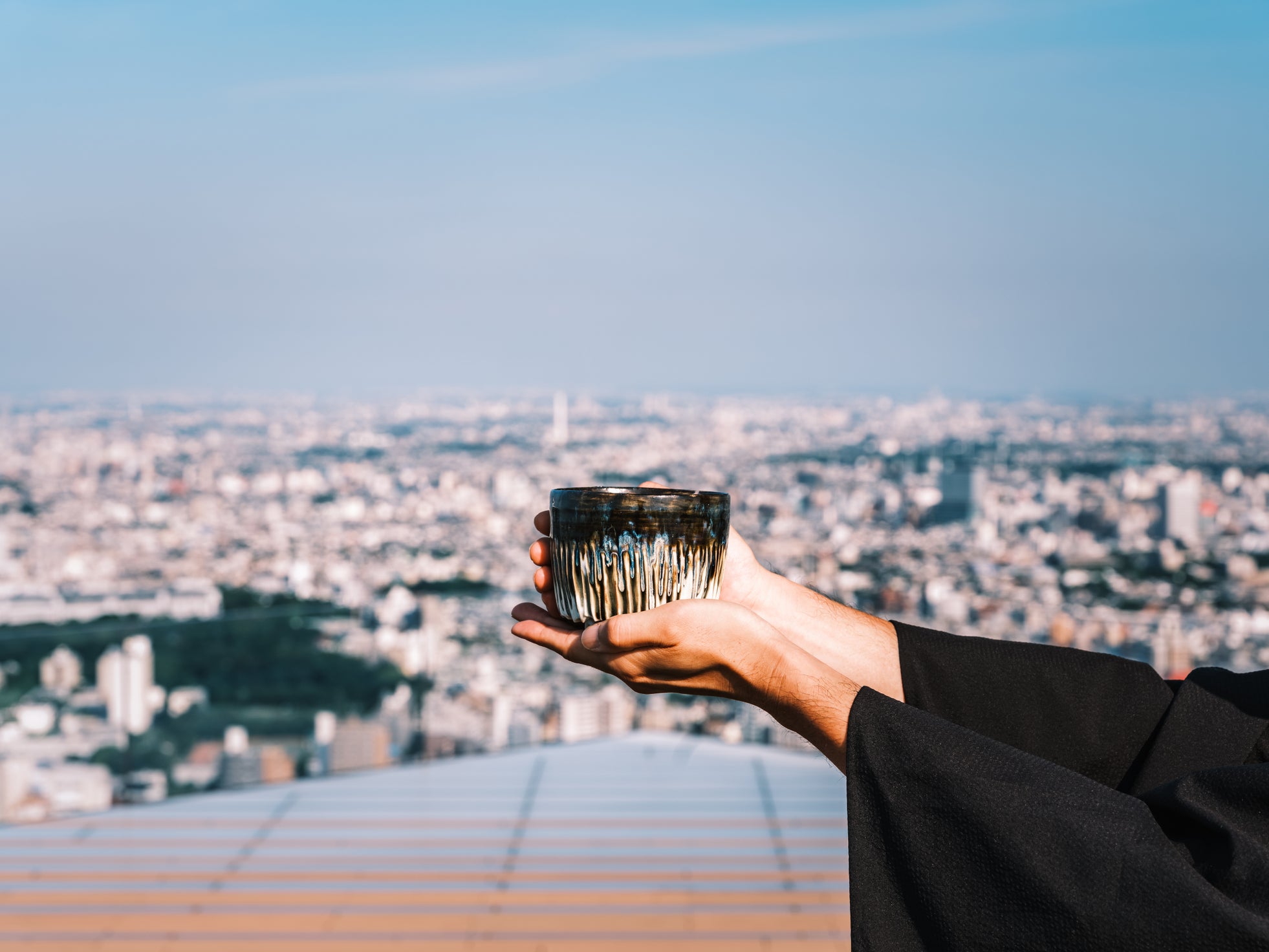 陶芸家・茶人の山田翔太さんとともに、茶盌を選び、実際に自分でお茶を点てることで、五感を通して自分だけの“みたて”に気づく体験です。都会の絶景と静かな時間で、直感をそっと磨いてみませんか。