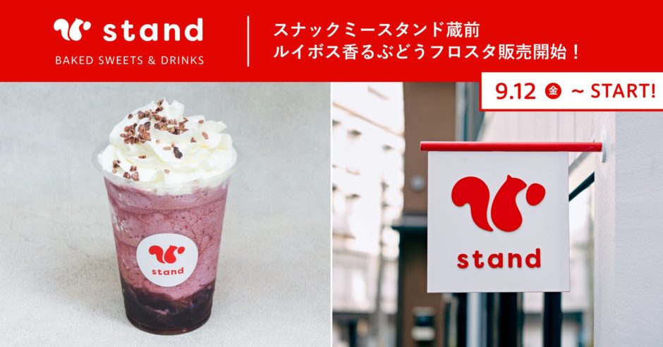 蔵前のsnaq.me standで、秋限定ドリンク「ルイボス香るぶどうフロスタ」が2025年9月12日(金)から販売開始。ノンカフェインのルイボスシロップと植物性のぶどうゼリー、冷凍ぶどうを合わせたひんやりデザートドリンクです。価格は650円(税込)。