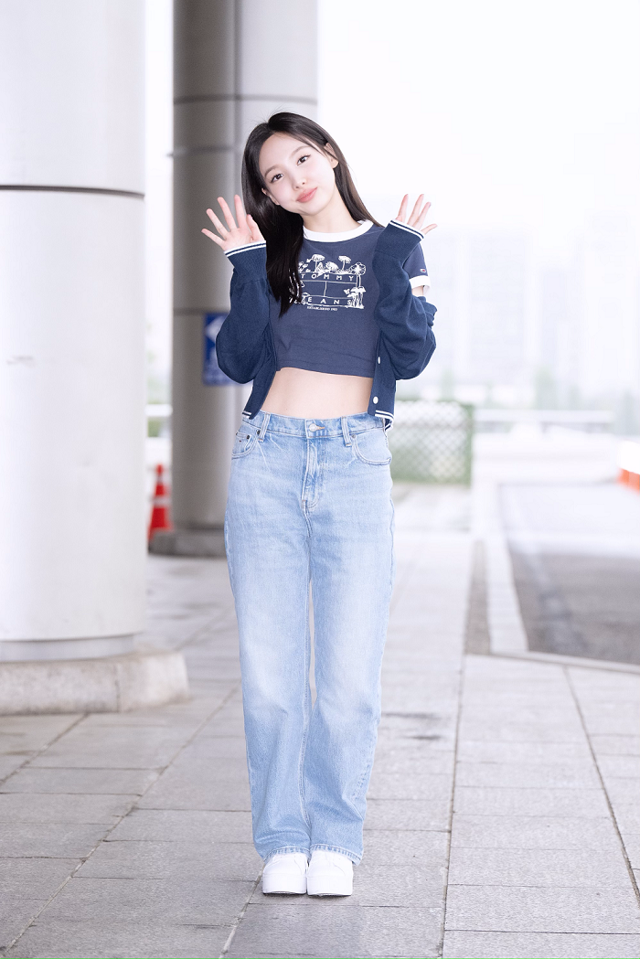 2023年4月、韓国のソウルにある金浦国際空港で、JYPエンターテインメント所属の人気ガールズグループTWICEのメンバー、ナヨンが、トミー ジーンズの最新サマーコレクションを着用して登場しました。