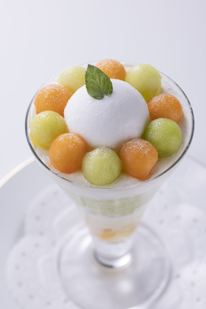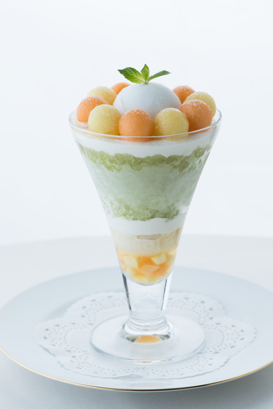 その時々で最も美味しい2種類のメロンを厳選し、グリーン、オレンジ、白という爽やかな色の組み合わせが目にも涼を運びます。このメロンパフェは2023年は7月1日(土)から9月30日(土)の期間限定で提供されます。